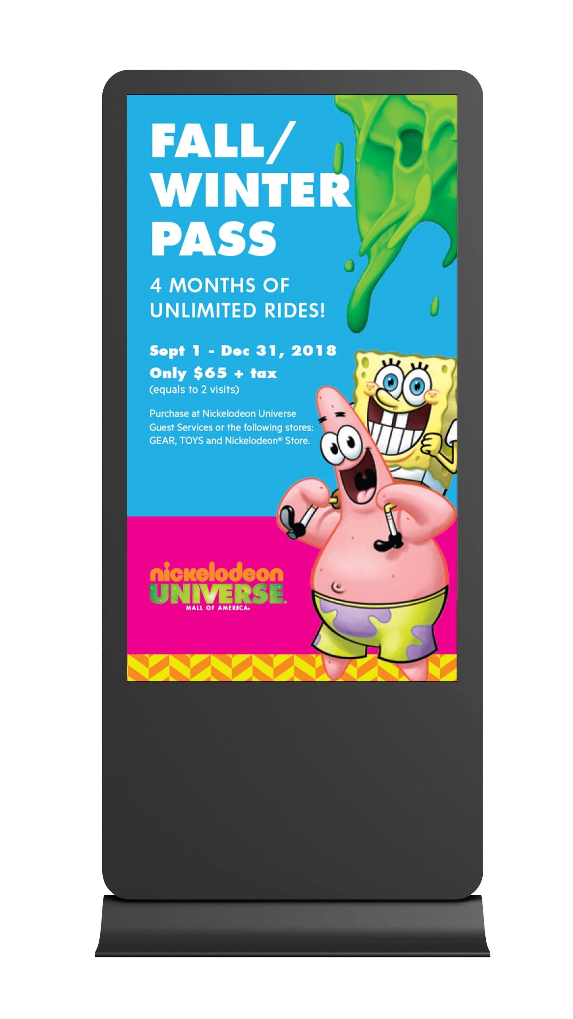 Nickelodeon wanted to promote their Fall/Winter Pass across the mall, web and print. Using their strict brand guidelines and ensuring text hierarchy was pronounced I was able to fit a lot of text into a small amount of space.