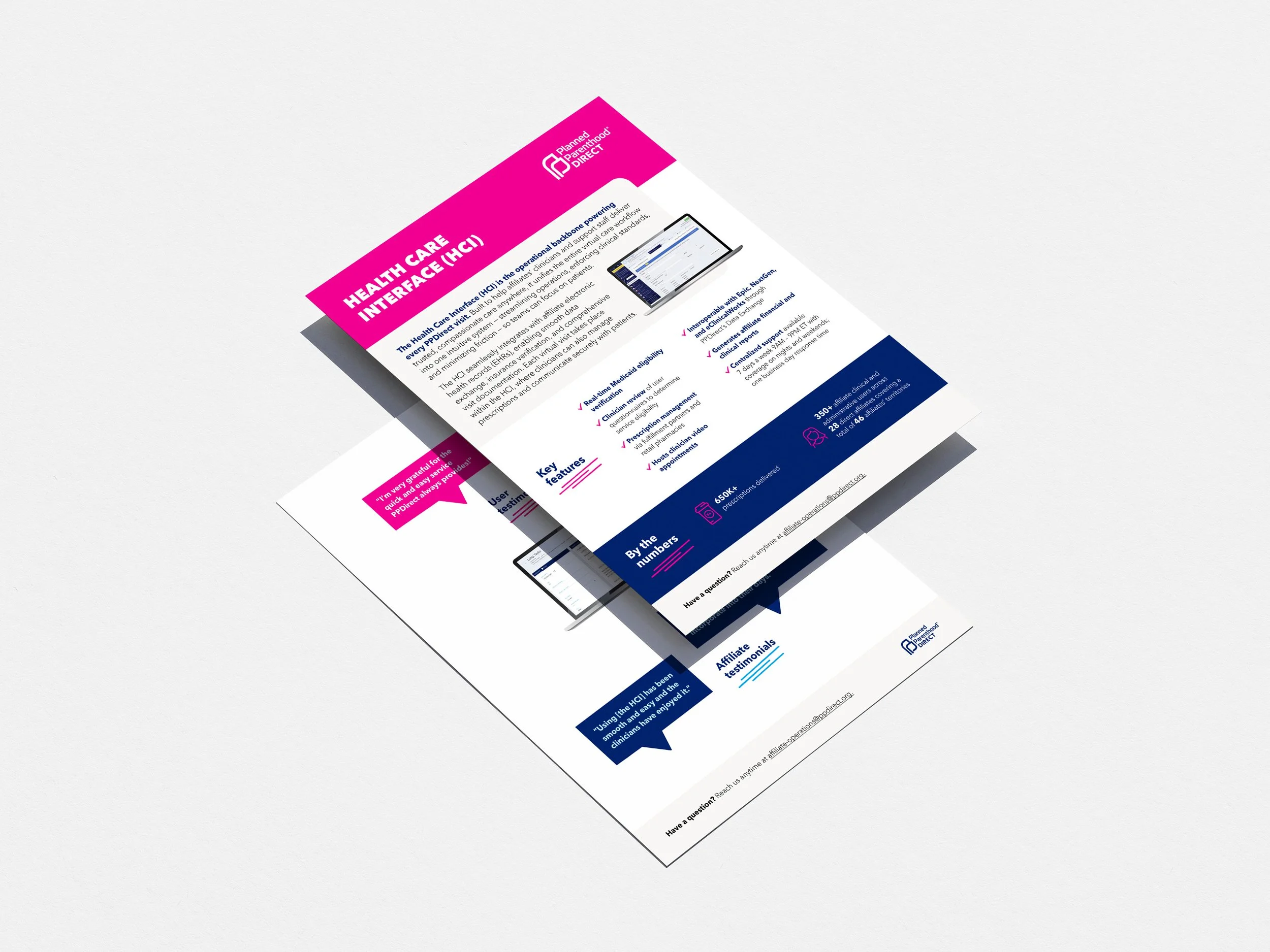 Created digital one-pagers to showcase information about Planned Parenthood Direct’s products. With lots of text and info, breaking it up into clear sections made it more digestible for the viewer.