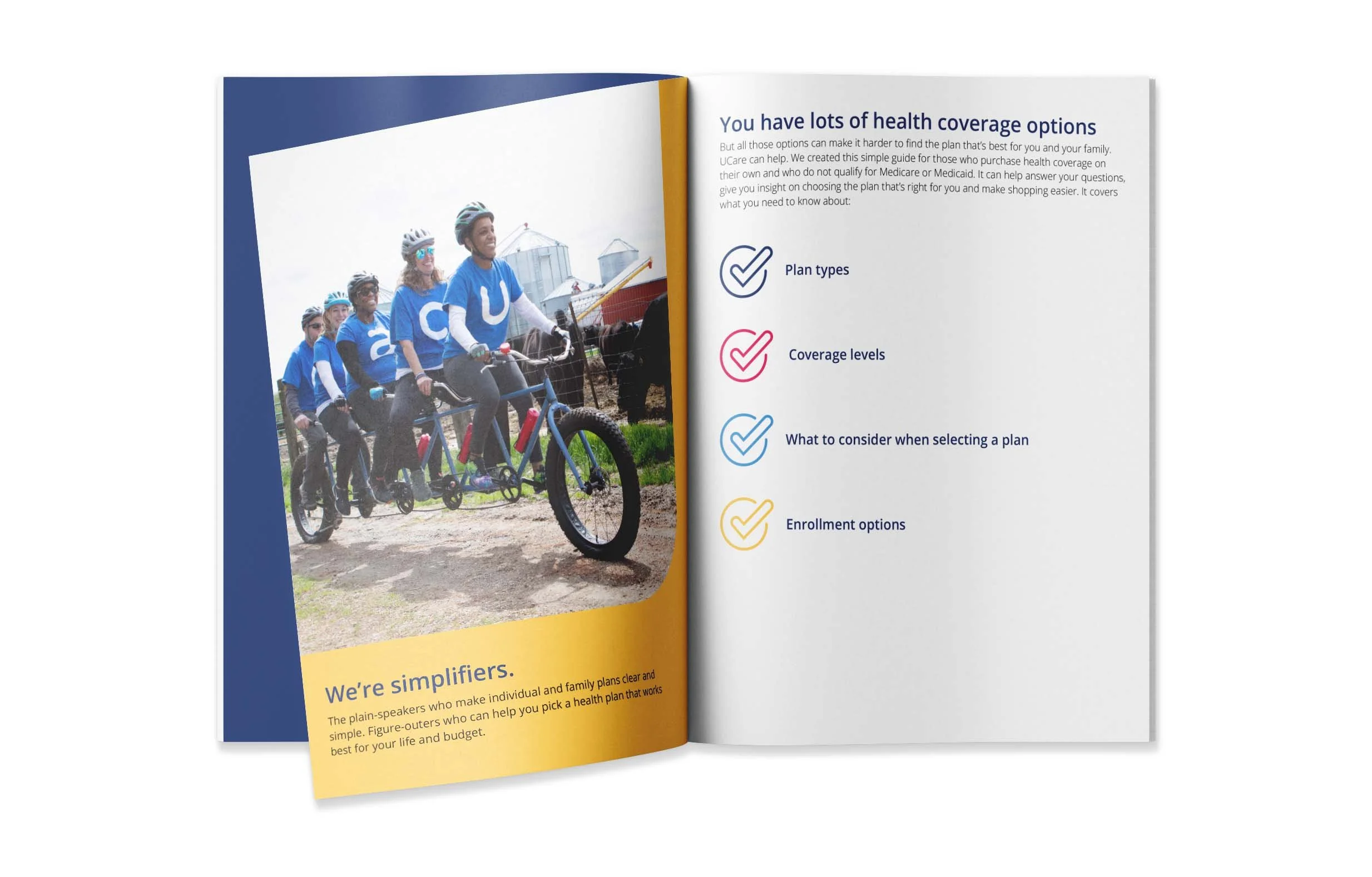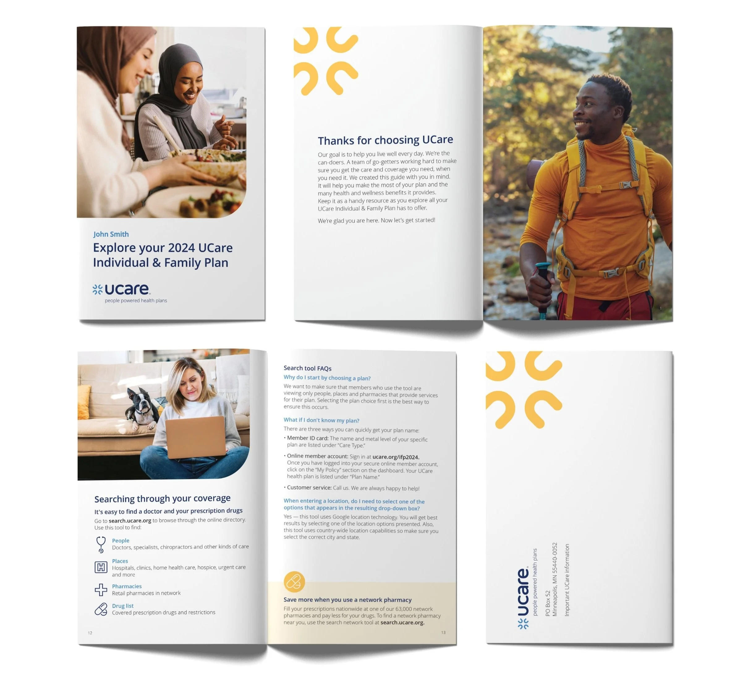 I redesigned UCare’s member guides to be a smaller format for easier referencing. With less copy, larger photos and icons throughout this all made it less intimidating for the member to read about their plan.